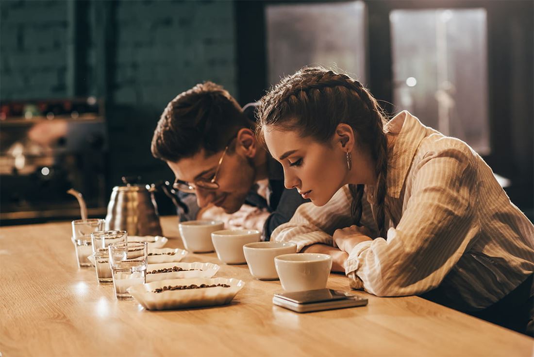 Harmonie der Aromen. Nach einer sorgfältigen optischen Kontrolle werden aus den unterschiedlich lang gerösteten Kaffeesorten mit viel Erfahrung und nach eigenen Rezepturen edle Mischungen, die sogenannten Blends, zusammengestellt.